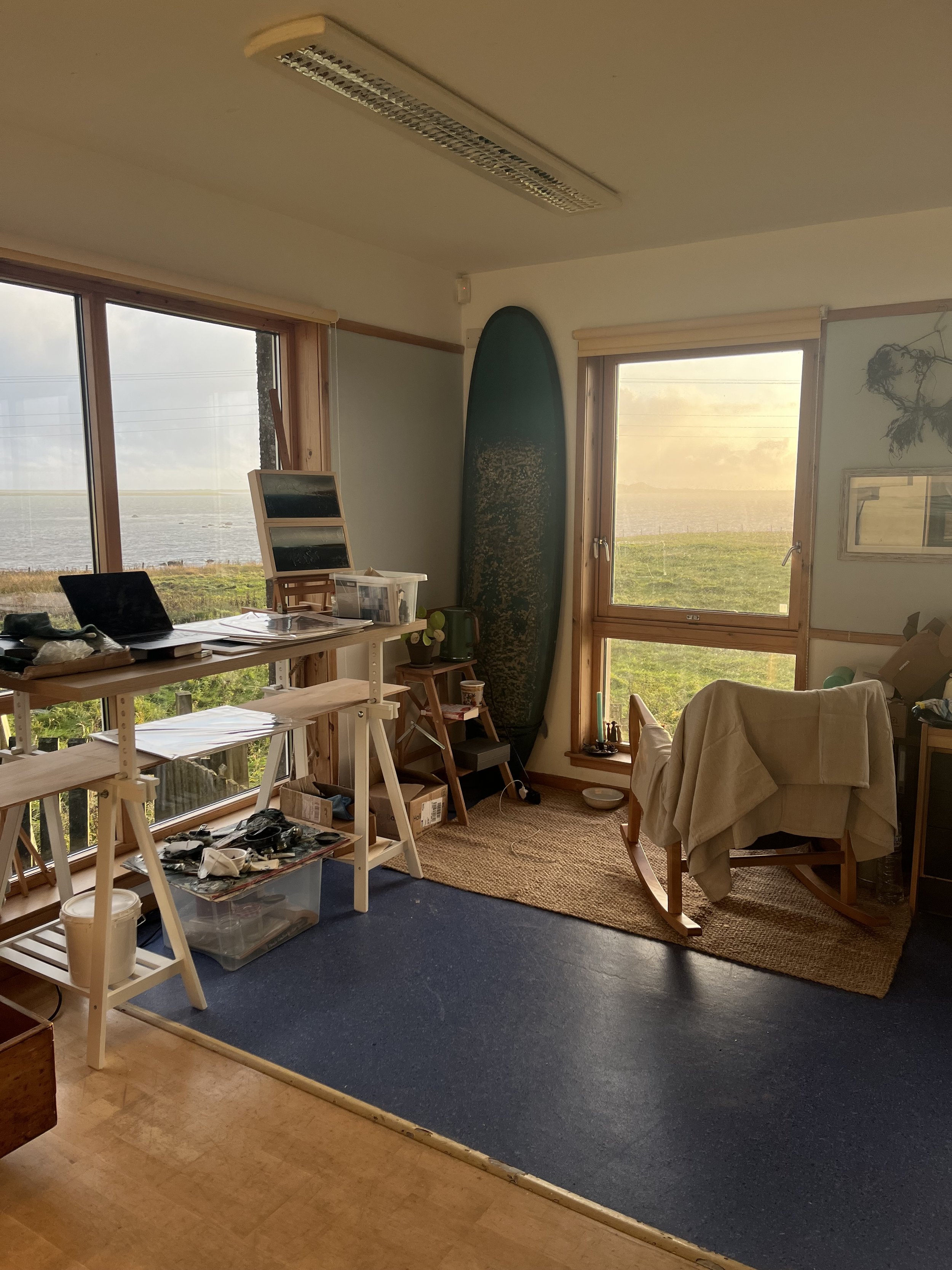 The Claddach Kirkibost Centre became my new studio, a space beyond what I could have imagined. Flooded with natural light and surrounded by sweeping sea views from every window.